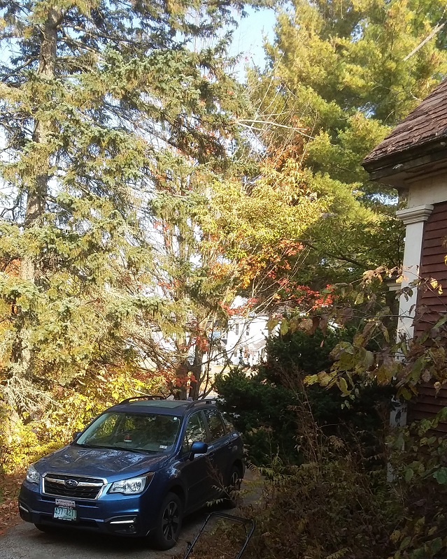 That’s the maple at the foot of our driveway, which is always one of the first trees in town to turn. We’re supposed to have night-time temperatures in the forties (Fahrenheit) all weekend.